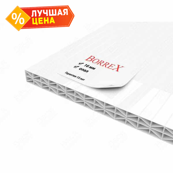Сотовый поликарбонат 16 мм BORREX опал 2100х6000 мм