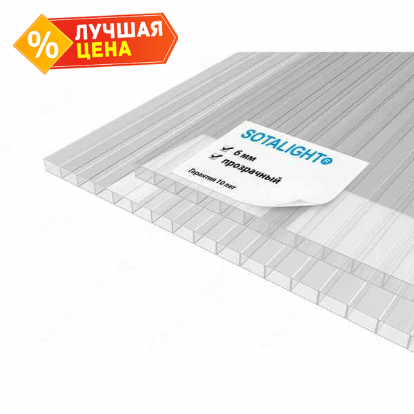 Сотовый поликарбонат 6 мм Соталайт прозрачный 2100х6000 мм