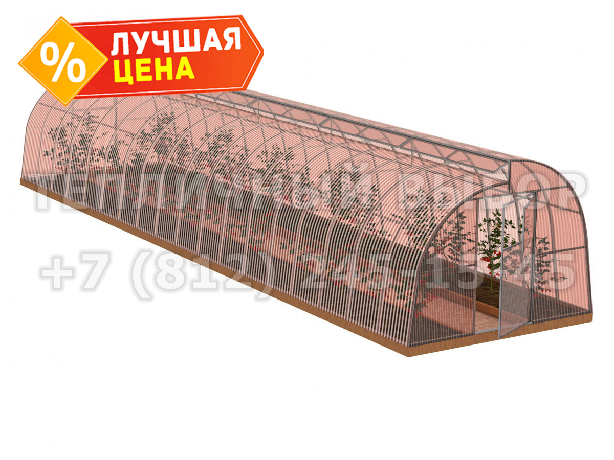 Теплица из поликарбоната-фито Усиленная По Митлайдеру 3х12 h=2.2 м профиль 25х25 мм
