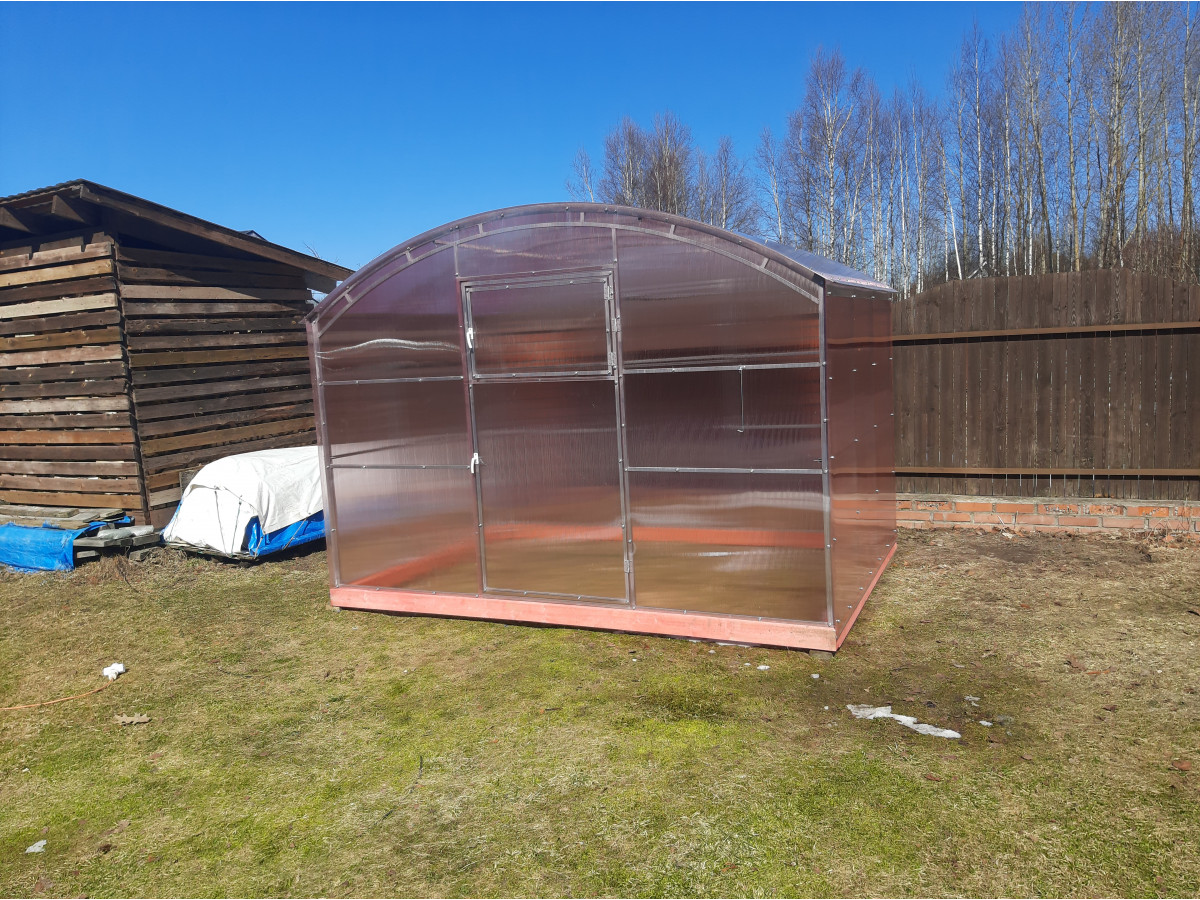 • теплица рекомендована для северных широт с большим количеством осадков, выдерживает порывистые ветра и сильные снегопады, не деформируется под слоем слежавшегося снега толщиной до 90 см;