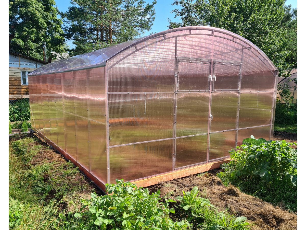 • широкая 4 м, ширина теплицы позволяет организовать 3 широкие полноценные грядки с комфортными проходами между ними;