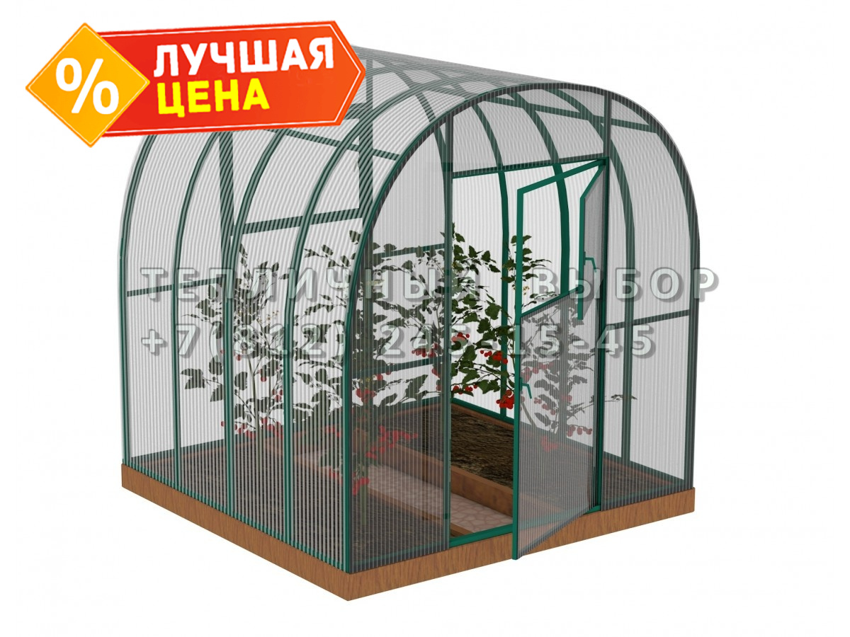 Теплица из поликарбоната Усиленная Арочная 2,1х2 h=2 м профиль 25х25 мм Зеленый
