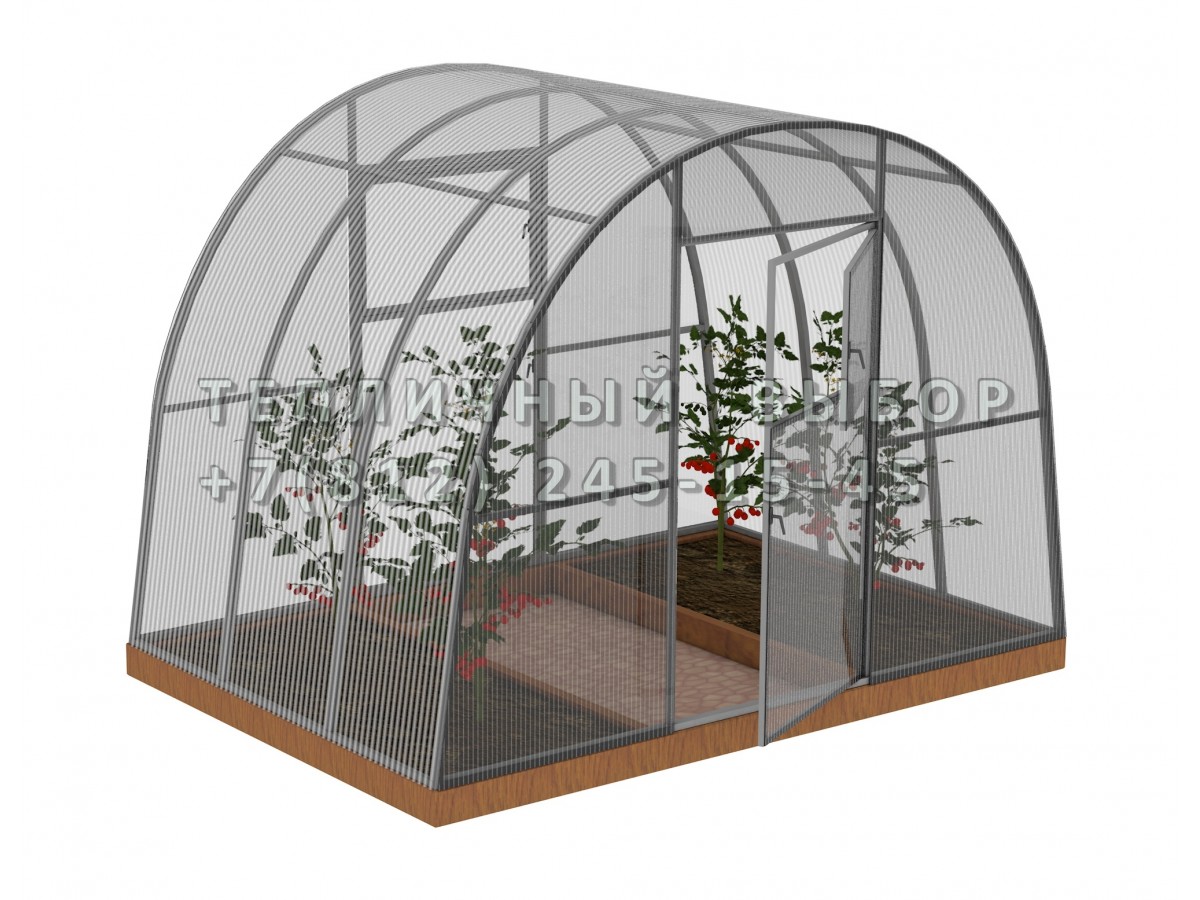 • практичный каркас с дверьми в каждом торце обеспечивает легкий доступ в теплицу и её проветривание