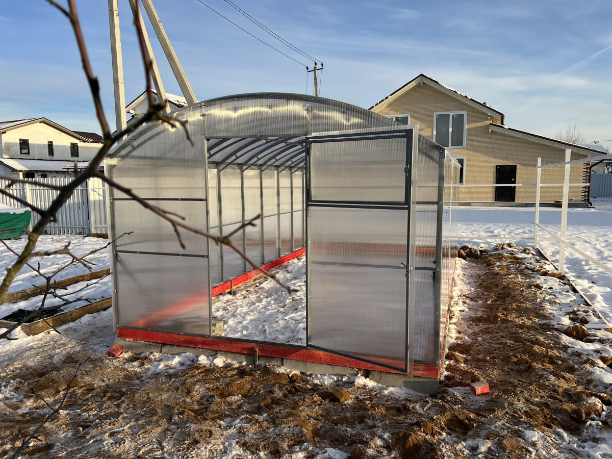 Возможна самостоятельная сборка по подробной инструкции. Сборка теплицы монтажниками-профессионалами компании занимает порядка 3 часов. В качестве основания рекомендуется использовать бетонный, либо деревянный фундамент из бруса. Предварительно брус необходимо обработать антисептиком. Полный комплект состоит из:
