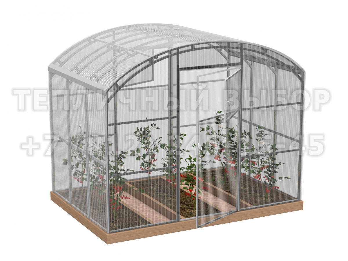 • практичная конструкция: 2 двери и 2 форточки обеспечивают легкий доступ в теплицу и ее проветривание. Размер дверей 171х89 cм, размер форточек в дверях 48х83 см;